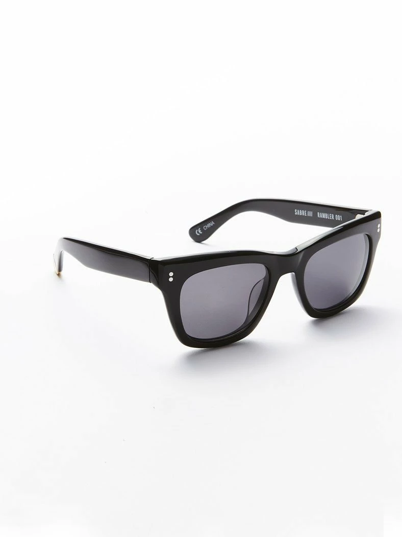 The Sabre Eyewear Rambler is a classic Wayfarer-inspired silhouette that features a hand-made acetate frame, Carl Zeiss lenses and French comotec hinges. Available in 5 shades:Â Black Gloss/Grey, Tortoise/Bronze, Matte Black/Grey.