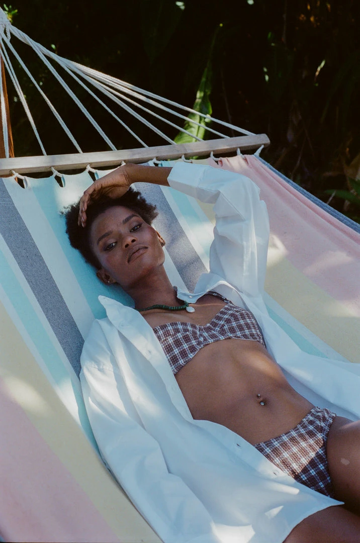 Thrills classic bikini bottom in an absolutely fab Washed Cocoa plaid print that’s fun, flirty and a flattering fit, you can’t go wrong. The Studio Bikini Bottom are amazing teamed with the Studio Fixed Triangle Bikini Top.