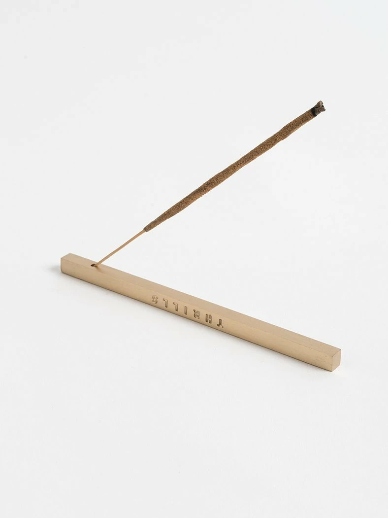Namaste. The rich smell of hand-rolled incense is like no other; dreamy and nostalgic taking you back to those days of tie-dye head-bands and anklets and the rich smell of Kuta. Burn that frankincence in style with this minimal and edgy brass incense holder, nicely branded with the iconic Thrills upside down logo.