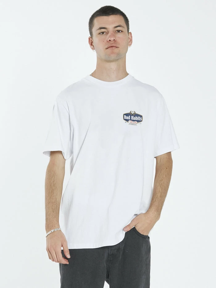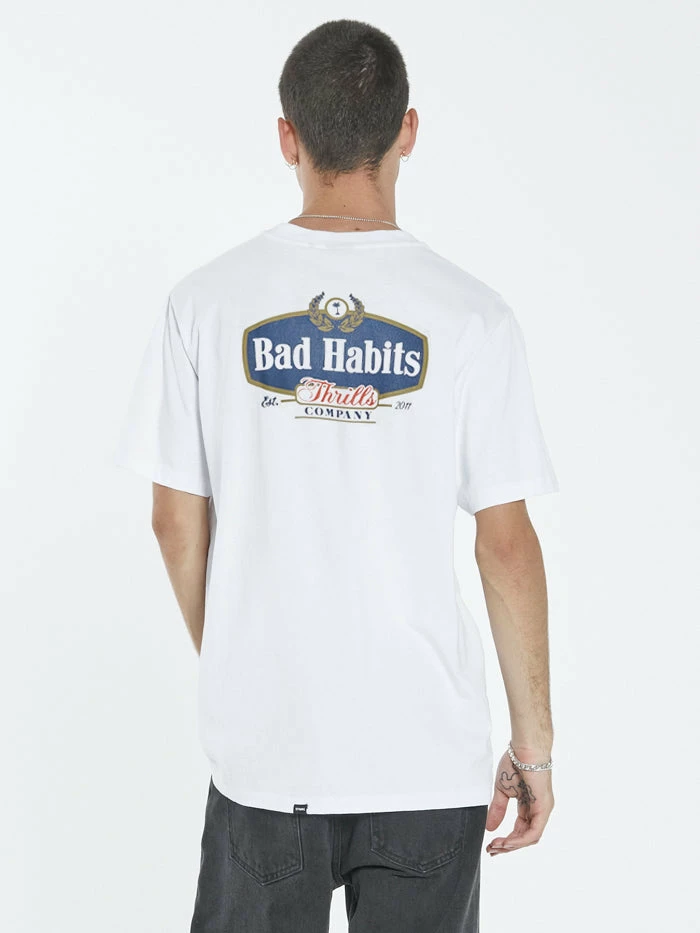 A homage to Americana icons, our Bad Habits Die Hard graphic this season packs a punch. Airforce blue is perfectly washed back to a true vintage look and the Dirty white is iconically THRILLS.