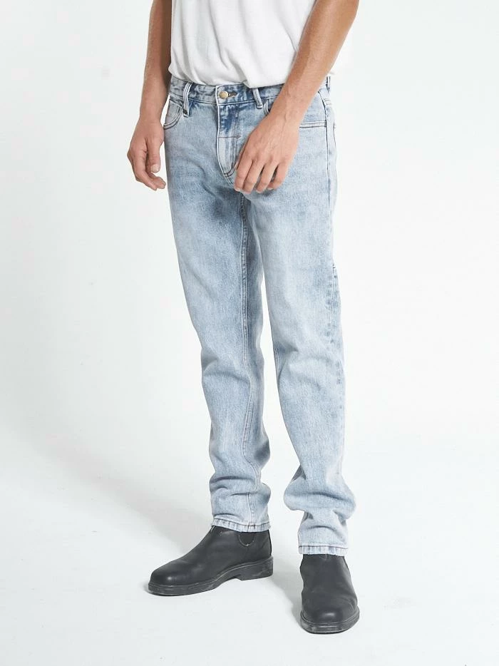 Our best-selling classic straight leg jean with a mid-rise crotch, now available in Aged Blue made from organic cotton. The Bones is a go to favourite with washes built to reflect a vintage/grunge tone with 1% stretch for modern functionality.