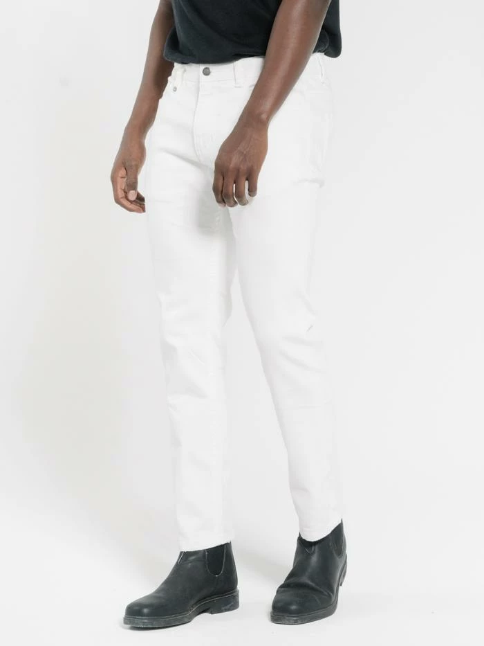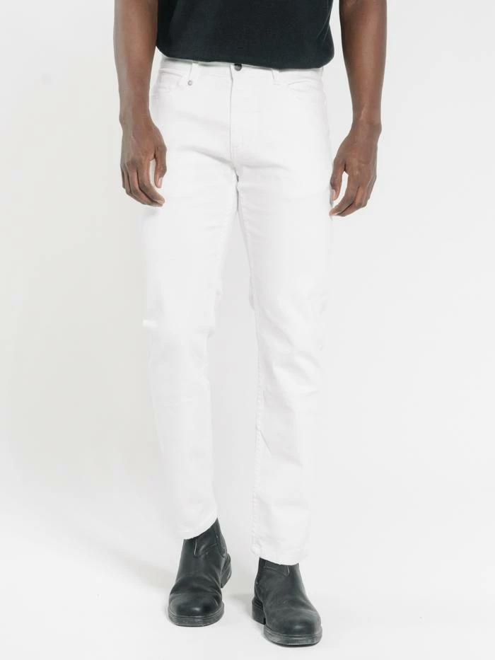 Our best-selling classic straight leg jean with a mid-rise crotch, now available in crisp Optic White. The Bones is a go to favourite with washes built to reflect a vintage/grunge tone with 1% stretch for modern functionality