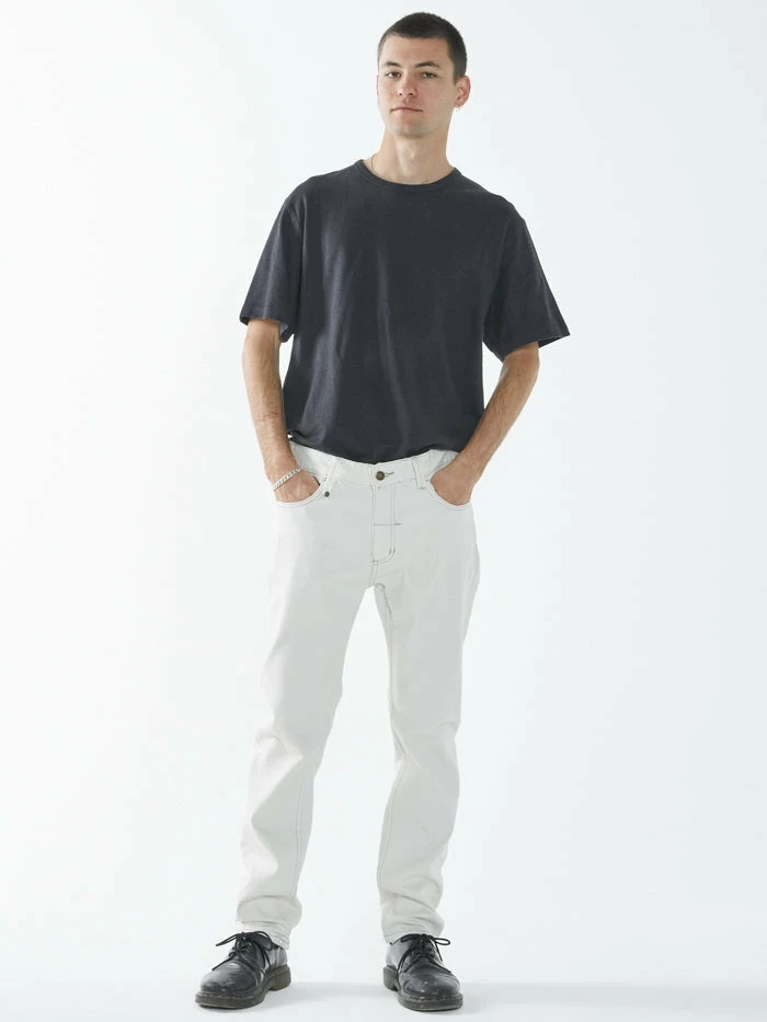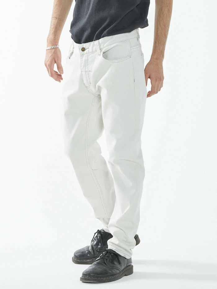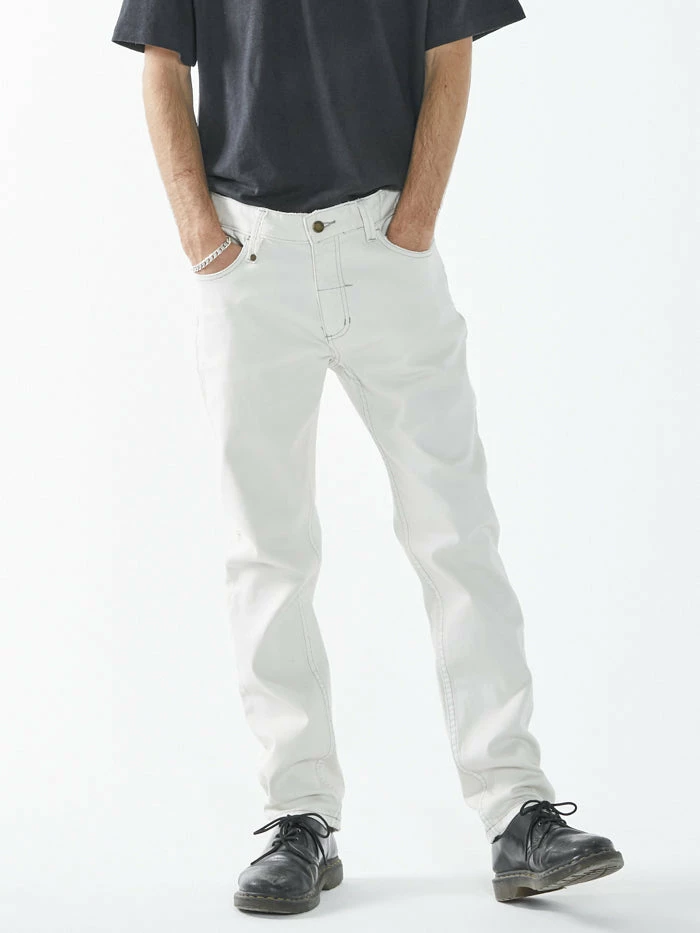 Our best-selling classic straight leg jean with a mid-rise crotch, now available in Vintage Bone. The Bones is a go to favourite with washes built to reflect a vintage/grunge tone with 2% stretch for modern functionality.