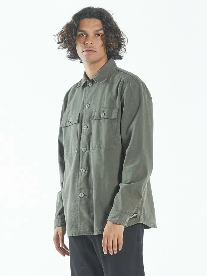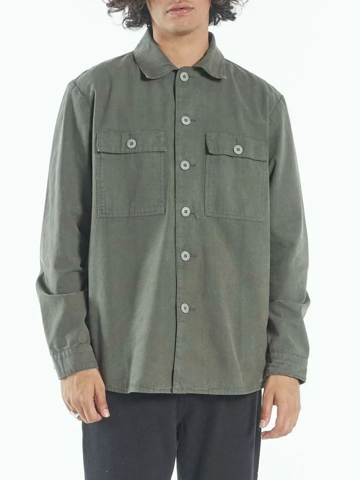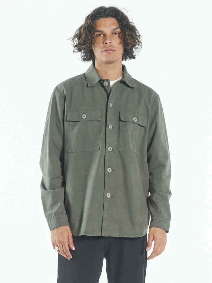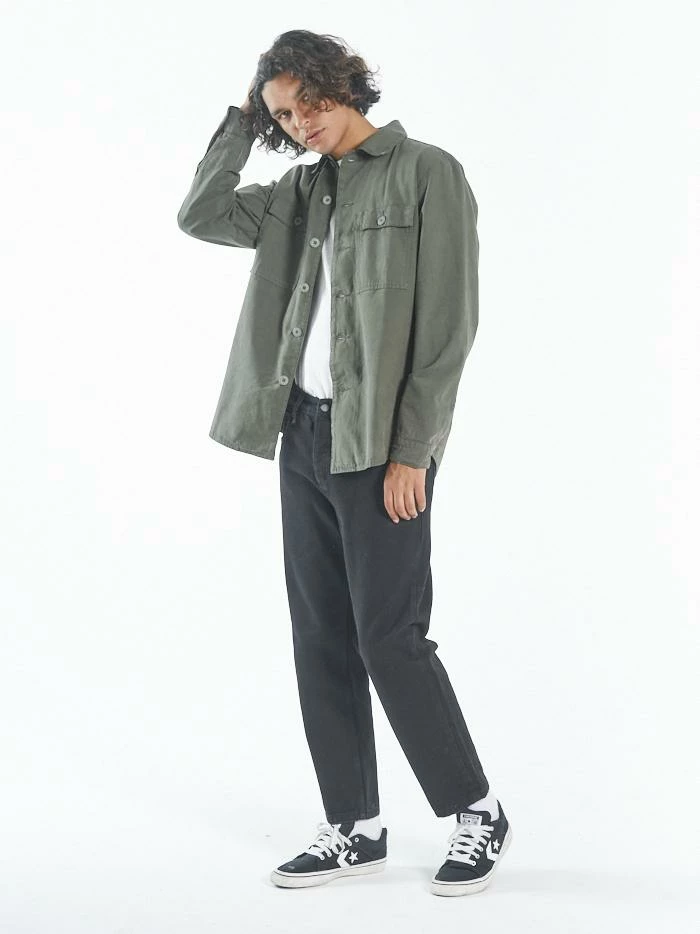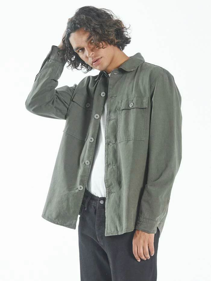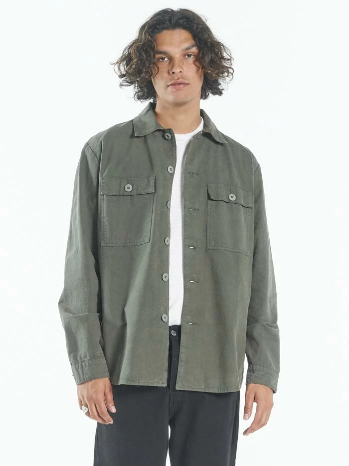 Vintage military inpired pieces have been integral to Thrills since the begining. This over shirt is perfect for those cooler days to throw on top of a tee or shirt, and will effortlessly look cool. It is a timelss addition to your wardrobe and we think you’re going to be stoked on it for years to come.