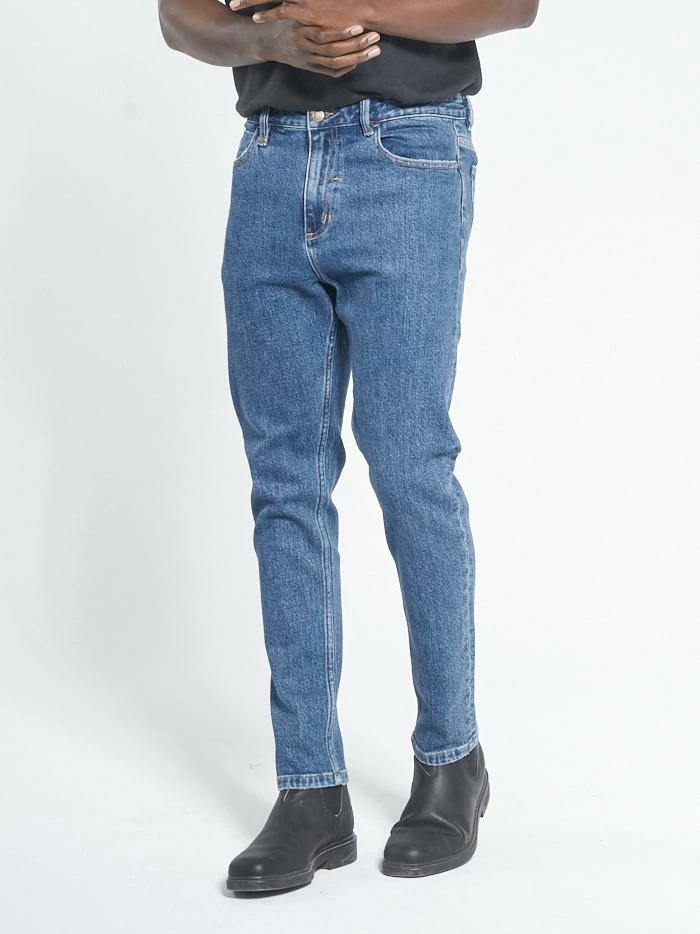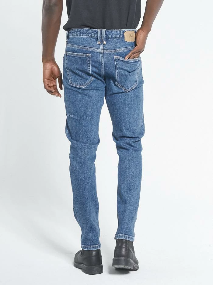 Our standard fit jean. A relaxed waist and thigh with a gradual tapered leg down to the leg opening make this a true slim, slouch fit jean. The Buzzcut gives you a little more room around the waist while still keeping a slim jeans look.