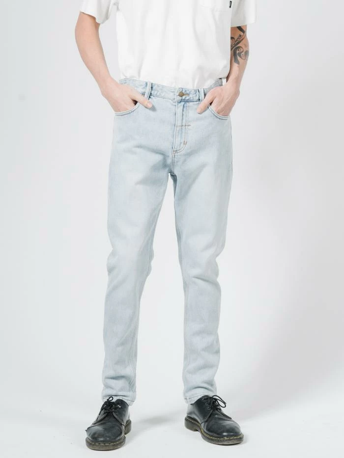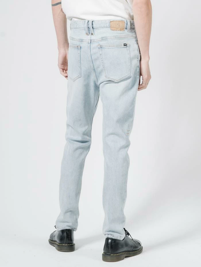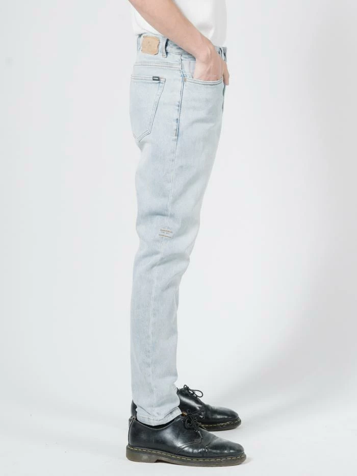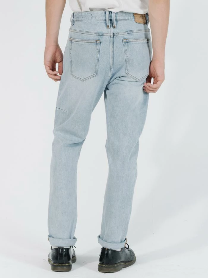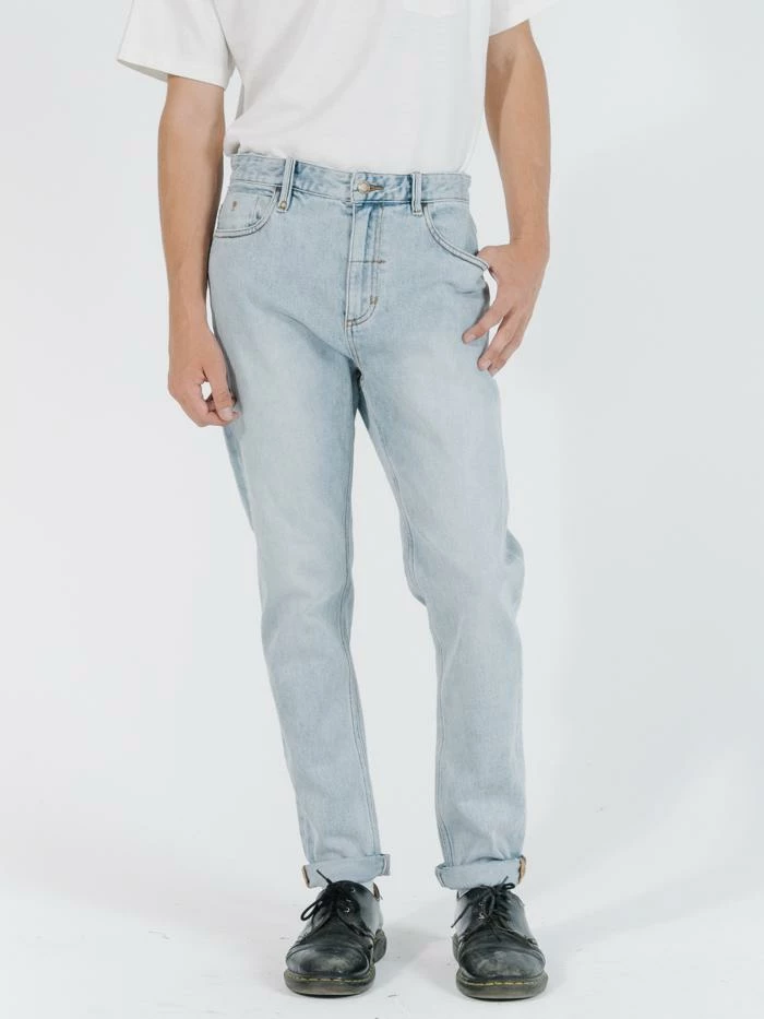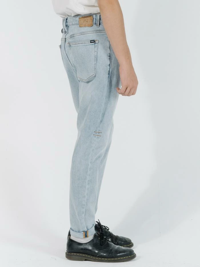 Our standard fit jean. A relaxed waist and thigh with a gradual tapered leg down to the leg opening make this a true slim, slouch fit jean. The Buzzcut gives you a little more room around the waist while still keeping a slim jeans look.