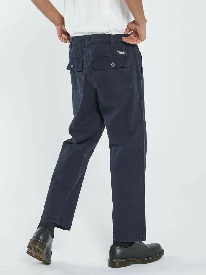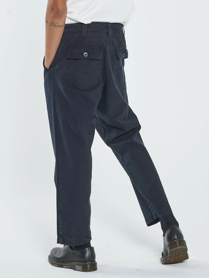 Vintage military inpired pieces have been integral to Thrills since the begining and this season’s Military collection plays with with contrast fabrications to create a tonal depth. Attention to fit and detail in contrasting panels, the Century Military Pant features our classic our classic military label and are sure to see you have some fun.