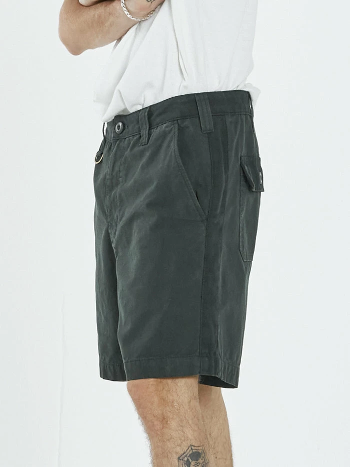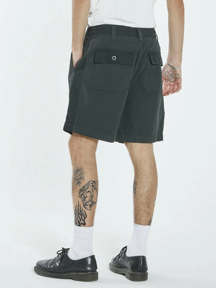 Vintage military inpired pieces have been integral to Thrills since the begining and this season’s Military collection plays with with contrast fabrications to create a tonal depth. Attention to fit and detail in contrasting panels, the Century Military Short features our classic our classic military label and are sure to see you have some fun.