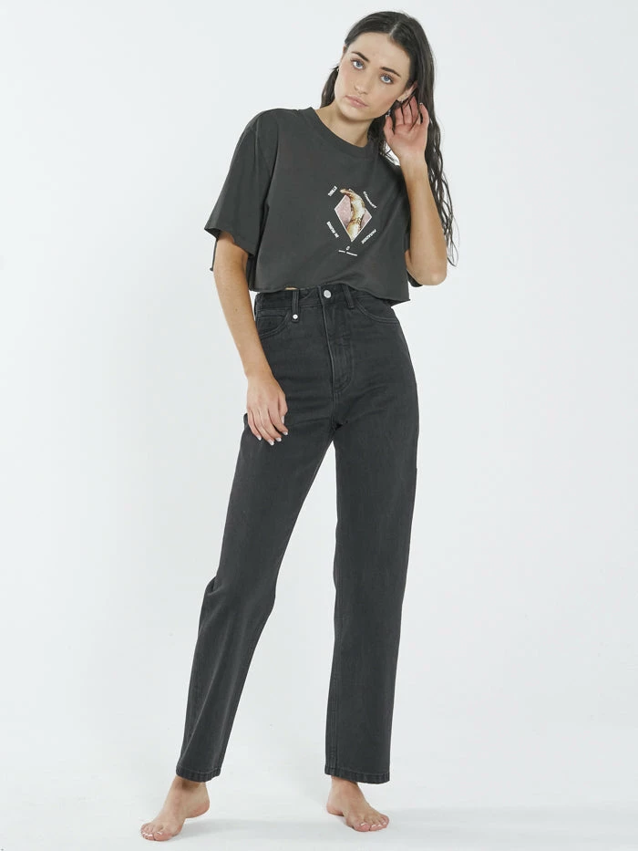A fun graphic on a cool oil green background, you can’t go wrong with this tee, really. Wear it on the warm days with some high waisted shorts or a good layer for when things are a little cooler.
