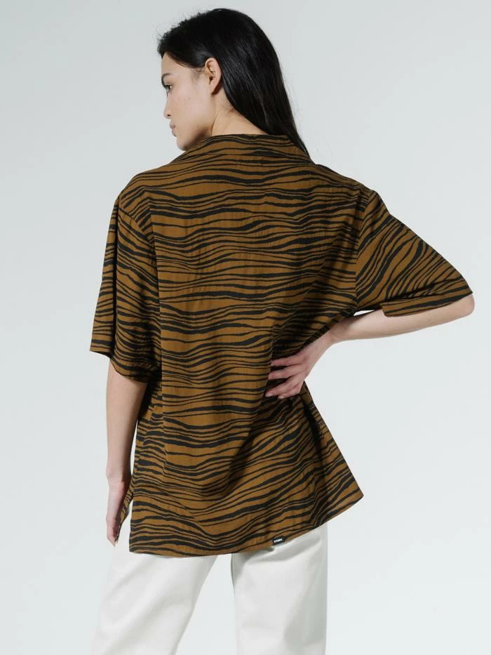 This shirt will make any outfit a fun time. Dress your favourite jeans up, or give a little slip dress and edgy vibe with this super cool shirt worn over the top.