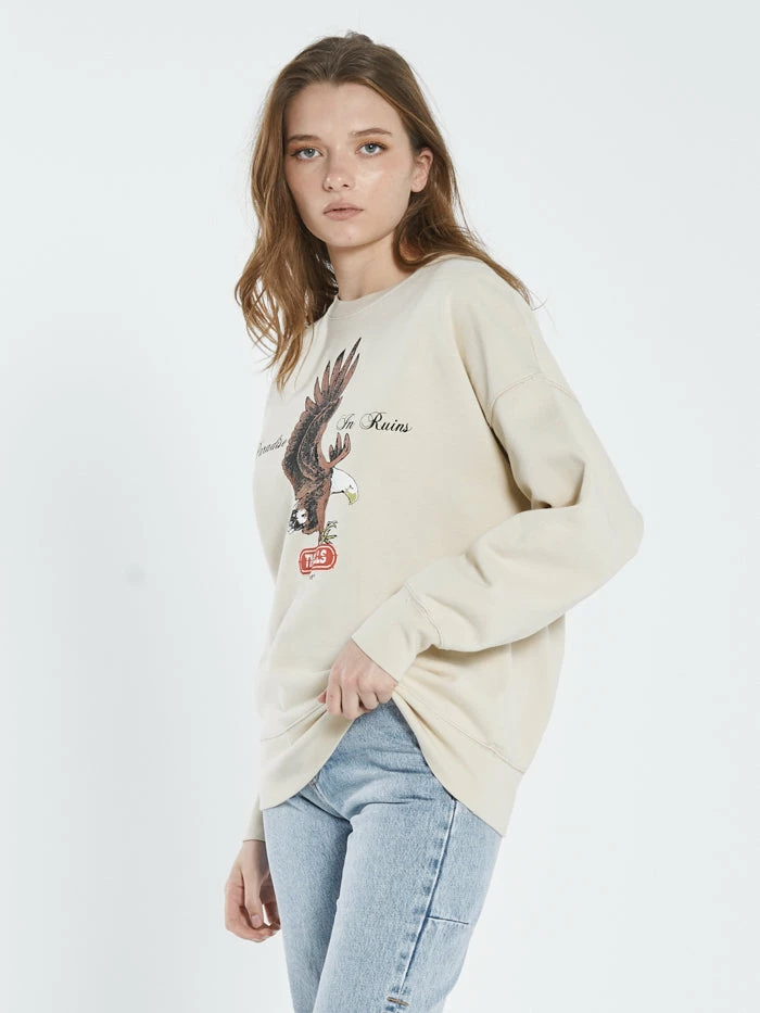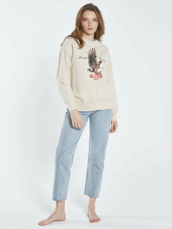 Quintessentially Thrills graphic and we aren’t mad about it. Easy to throw on crew and so easy to pair with almost everything. A classic Thrills piece that you can’t live without.