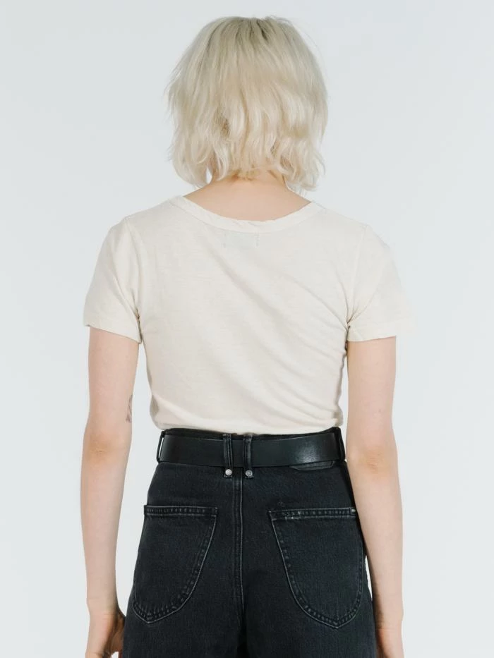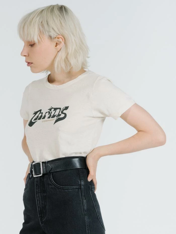 A flattering femme cut with an edgy and bold logo, you this tee is will is a perfect addition to your wardrobe. It looks great with vintage blue or black denim and some boots or old converse.