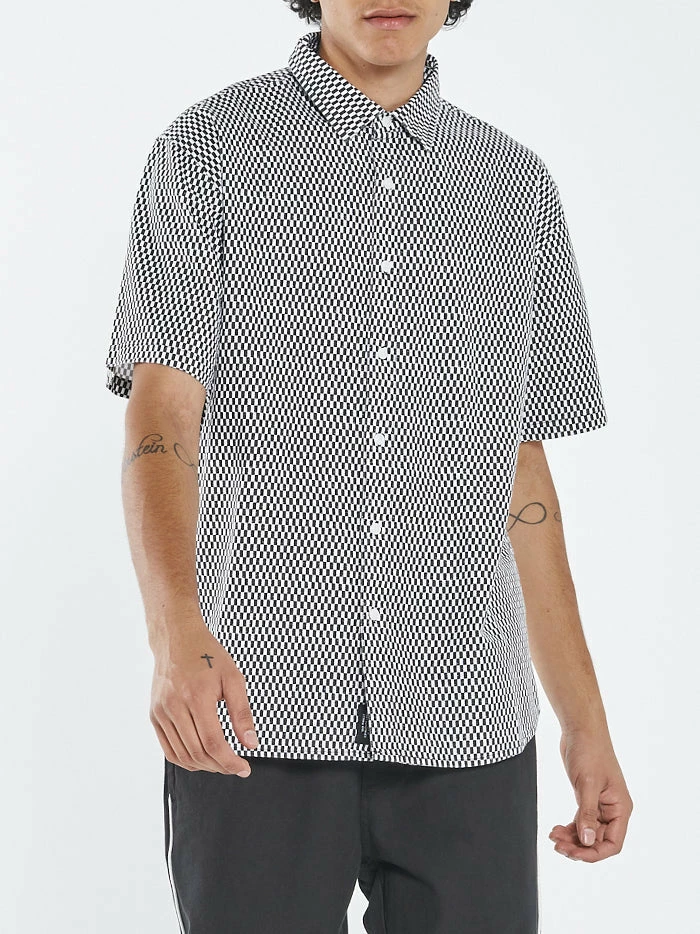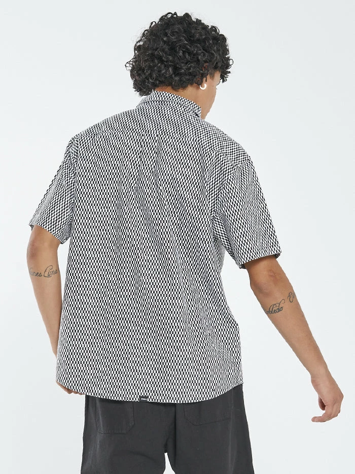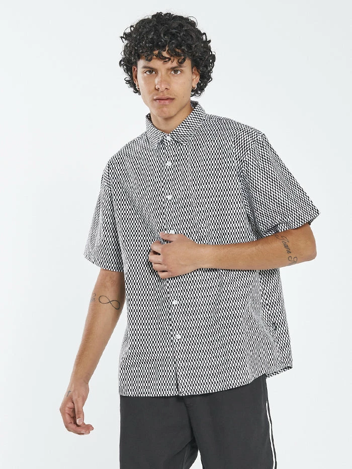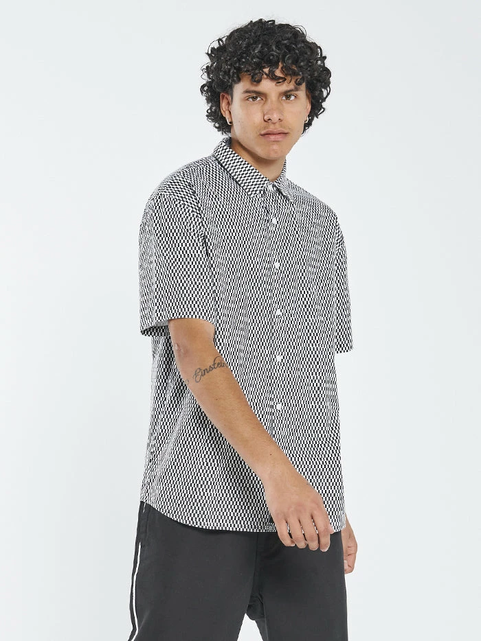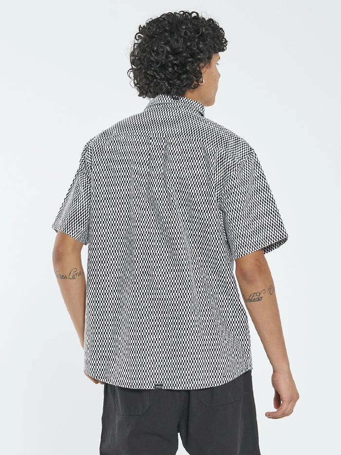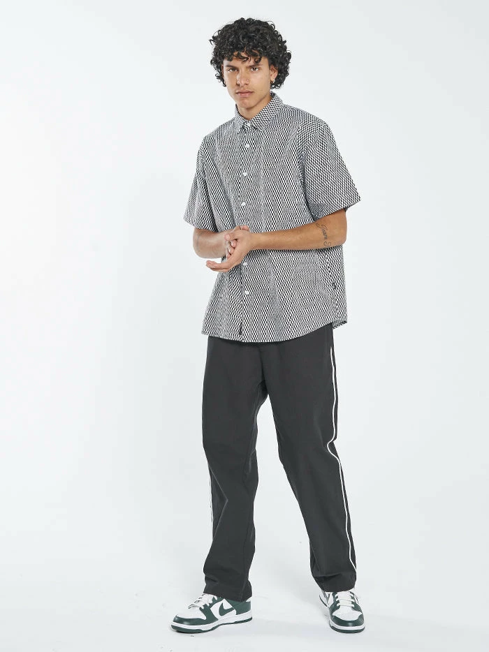 An optical illusion that doesn’t disappoint, made with 100% certified organic cotton. The Fragments Short Sleeve Shirt pays homage to vintage 90s. Wear it with the matching pants, buttoned up and tucked in for a Thrills twist on the Canadian tuxedo. You’ll be sure to turn heads!