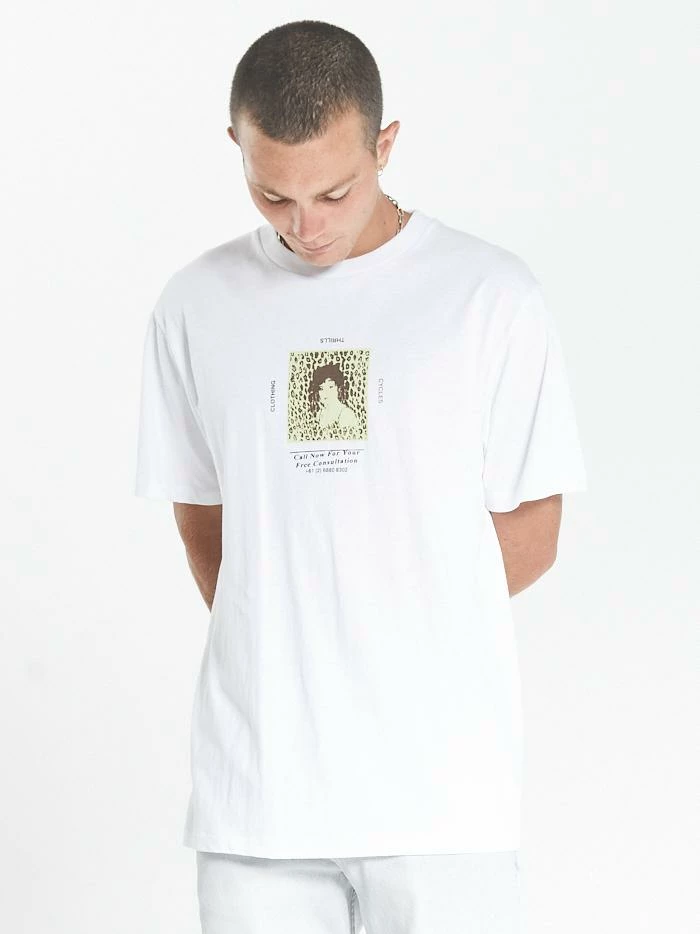 The Free Consultation tee is the daily relaxo’ tee to work with any pants you happen to have on hand. It’s a  fresh and clean tee with a hint of punk dusted in the graphic to get you through the day.