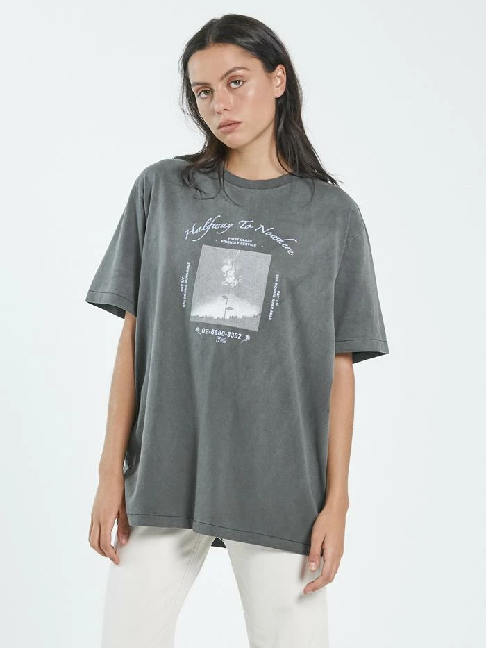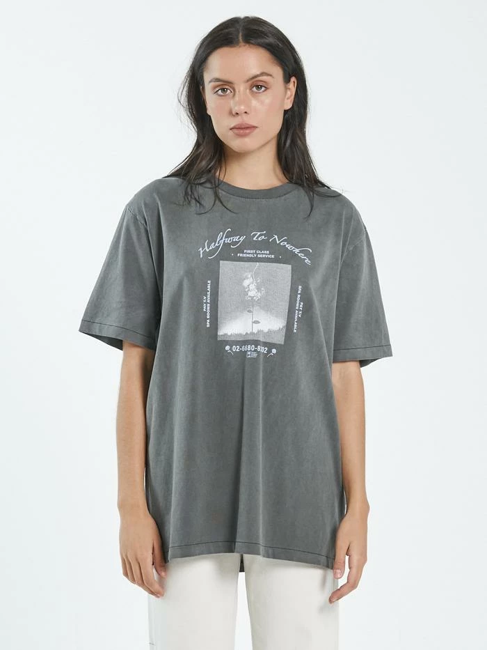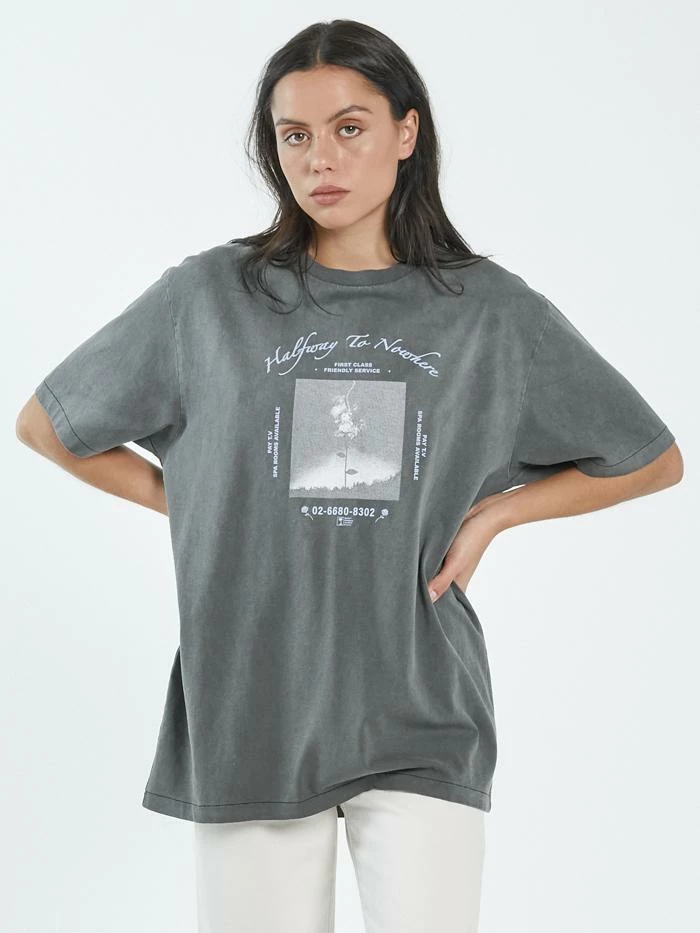 A classic merch fit tee, you’ll feel edgy and fun no matter how you style it.