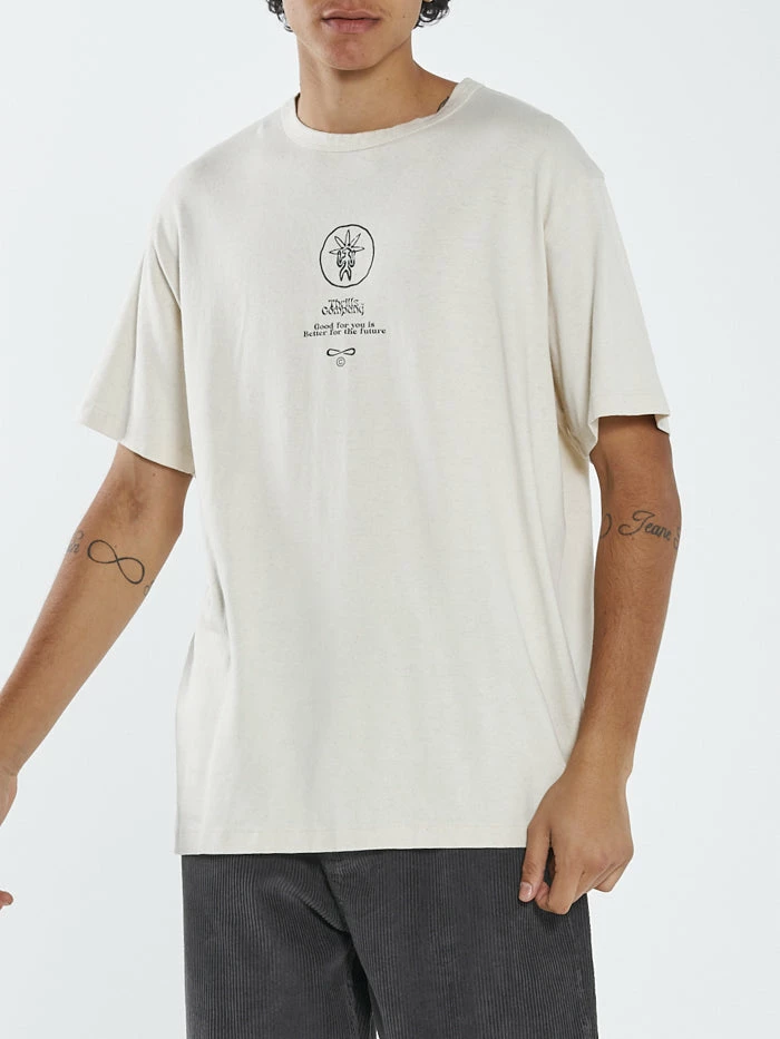 The Hemp Better Future Merch Fit Tee is sustainably-made, this tee is comprised of our love for classic staples and passion for a better fashion industry. What we choose to wear says both who we are and what we stand for, and this piece is designed to give you the opportunity to express the kind of future you want to live in.