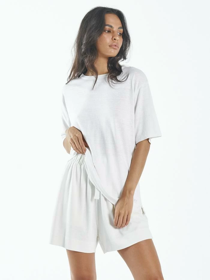 Hemp continues to be at the forefront of our design process, one of the world’s most sustainable and durable fabrics for clothing. We have introduced our core basics in a heavy weight hemp/organic cotton blend across both mens and womens. Soft to the touch yet durable and long lasting, the Hemp Merch Box Tee is our newest fit in an oversized boxy style – our favourite tee to wear day in and out.