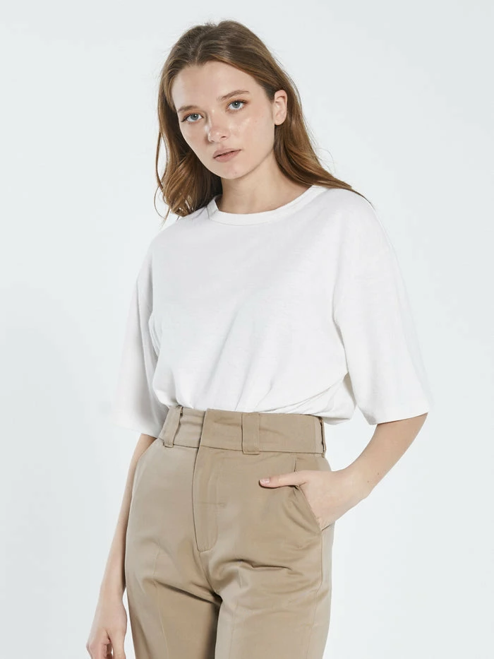 Hemp continues to be at the forefront of our design process, one of the world’s most sustainable and durable fabrics for clothing. We have introduced our core basics in a heavy weight hemp/organic cotton blend across both mens and womens. Soft to the touch yet durable and long lasting, the Hemp Merch Box Tee is our newest fit in an oversized boxy style – our favourite tee to wear day in and out.