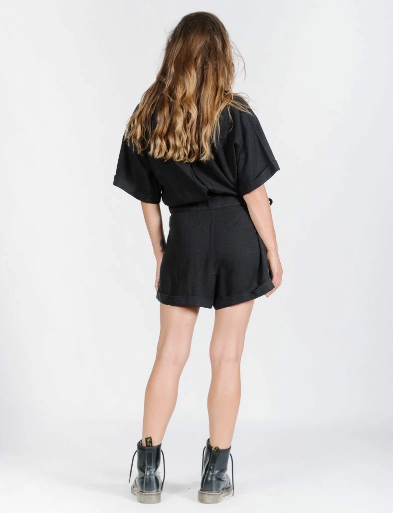 Made from our favourite eco-friendly hemp blend, the safari-inspired playsuit in washed black is our go-to for something utilitarian with a feminine edge. Featuring buttons and pleats up at the front the Safari Playsuit will have you looking the part no matter what your plans.