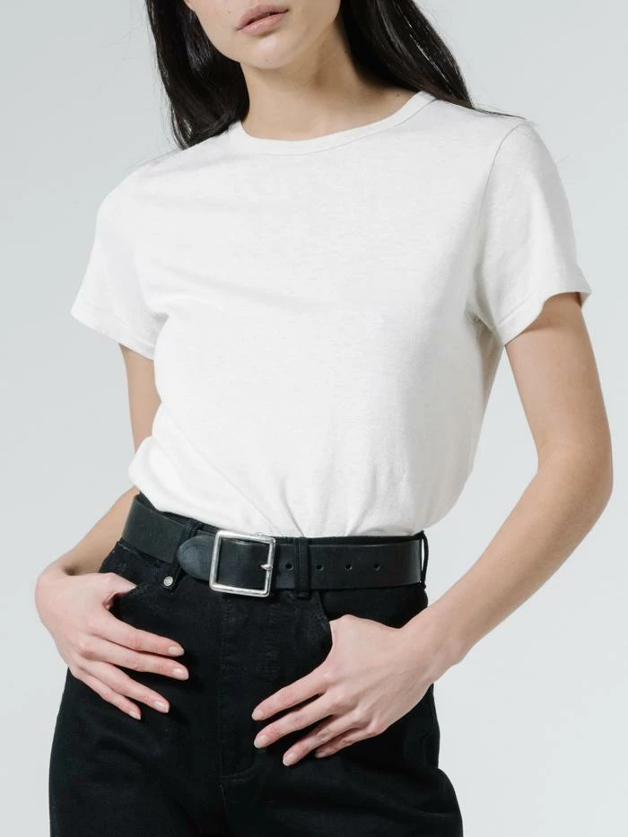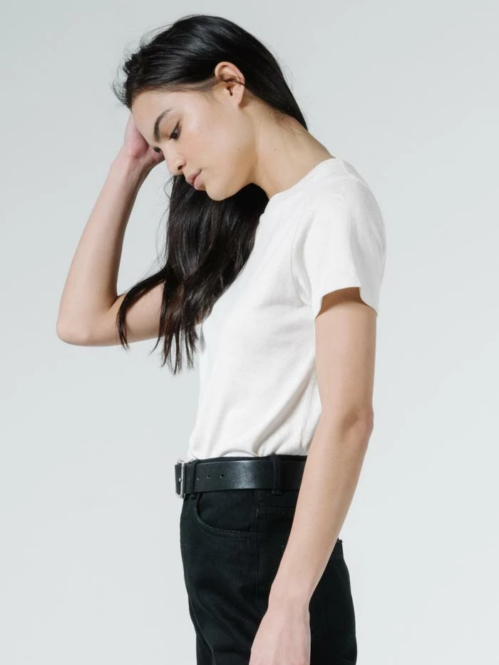 Made from our favourite blend of fibres, hemp and cotton, this tee is soft and will keep getting better with a bit of wear. Team it with some vintage denim for a real ‘Rachel from friends’ 90’s vibe.