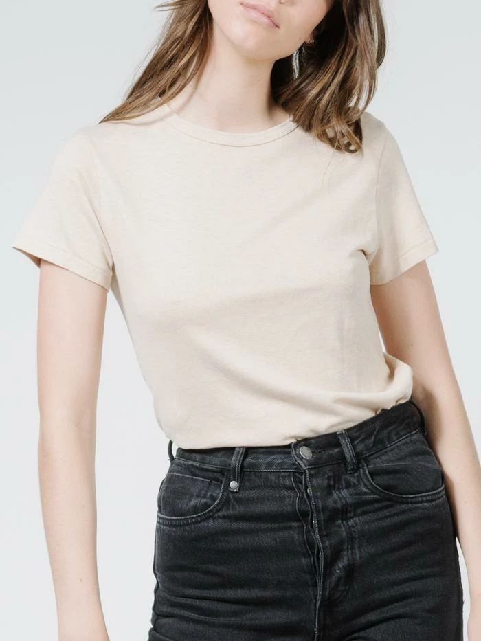 Made from our favourite blend of fibres, hemp and cotton, this tee is soft and will keep getting better with a bit of wear. Team it with some vintage denim for a real ‘Rachel from friends’ 90’s vibe.