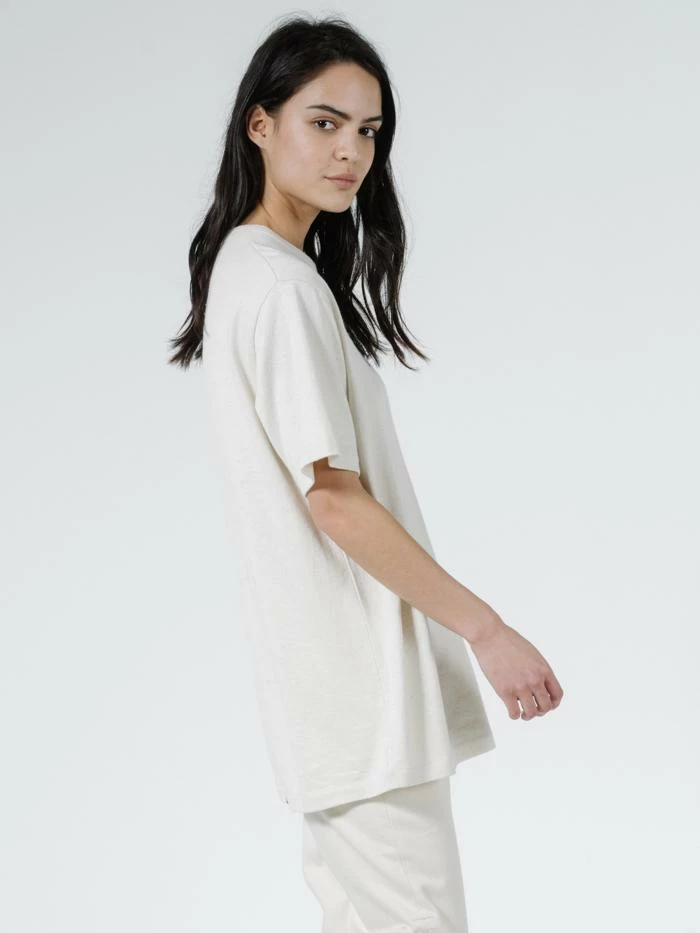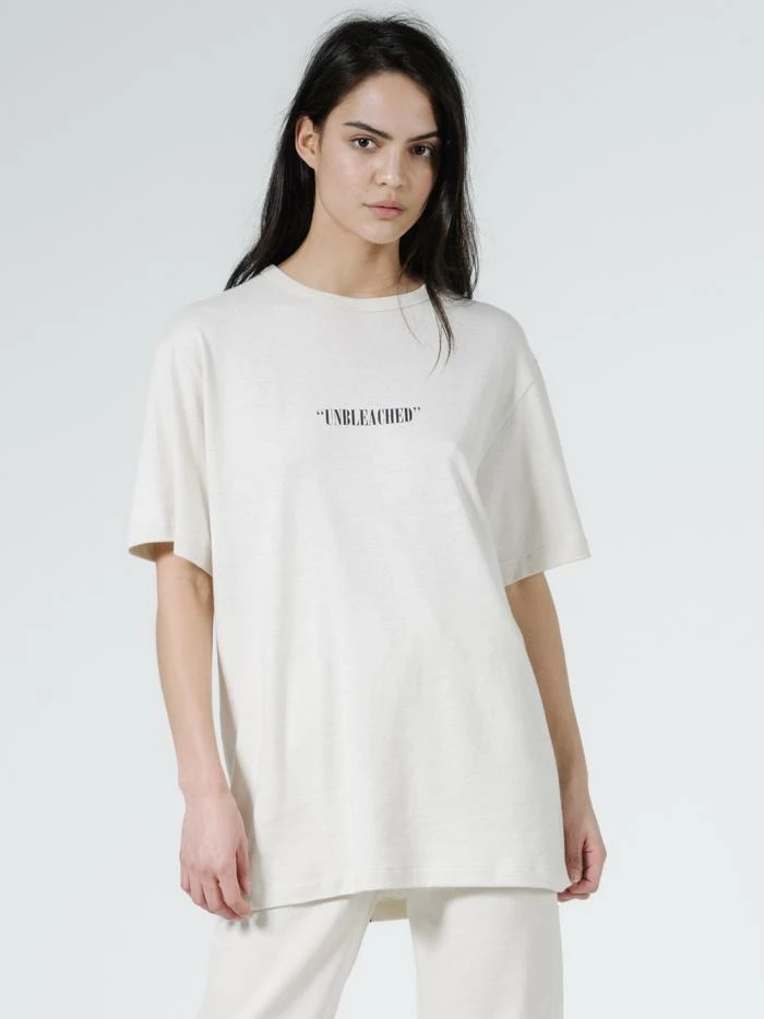 Made of a super soft Hemp/Organic Cotton blend, the Unbleached Merch Tee features a subtle logo on our bestselling, slightly oversized tee fit – a guaranteed staple for the wardrobe. Available exclusively at Thrills stores and online only.
