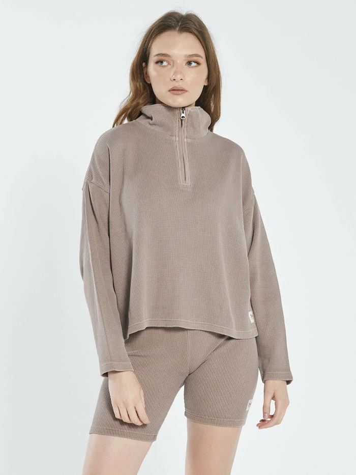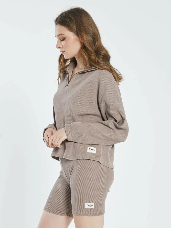 The Hiatus Waffle 3/4 Zip Pull Over is part of our exclusive “Waffle” capsule collection, where each piece has been carefully created using our new, unique and high-quality waffle fabric, made in our adorned organic cotton. In line with our Unbleached initiative, this style features our premium unbleached and undyed fabric. Comprising of 14 comfort-driven styles, this capsule nods to elevated loungewear while staying true to our iconic vintage-inspired street feel, all with sustainability front of mind. Available exclusively at Thrills stores and online only.
