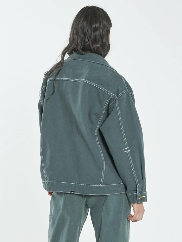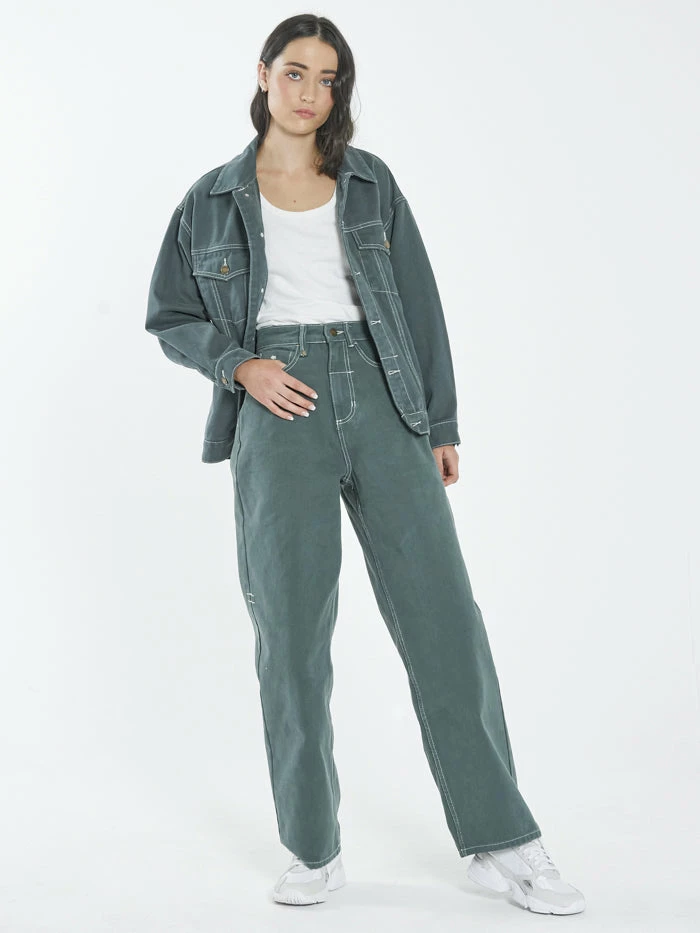 The Madi Jacket now comes in Vintage Teal. A slightly oversized denim jacket in a cool work wear look. Made out of Organic Cotton you can now feel and look good, every day.