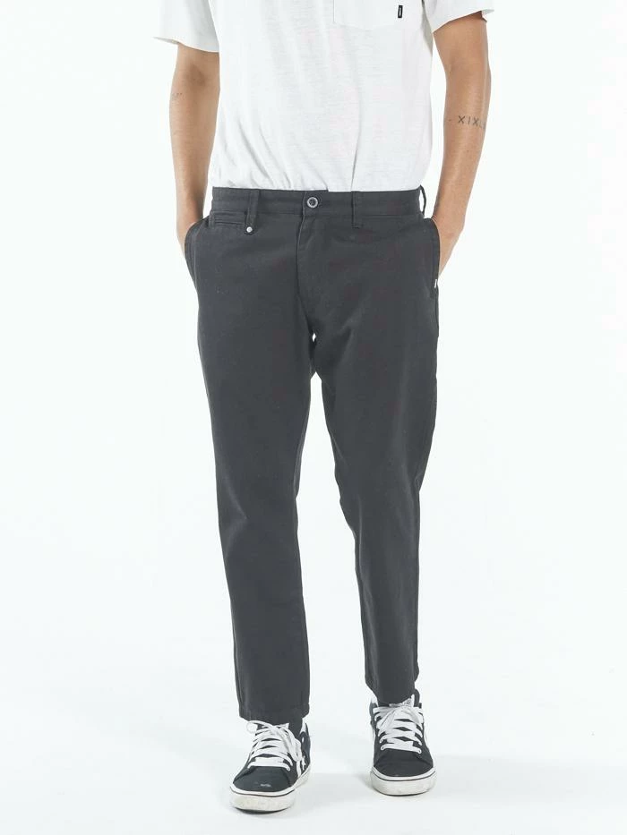 Our new Minimal Thrills Work Chopped Chino Pants are fitted and cropped and feature a deep, workwear-style back pocket. Trust us, they kinda work with any look you may be going for; match with one of our button ups and your docs or old chucks for a strong look.