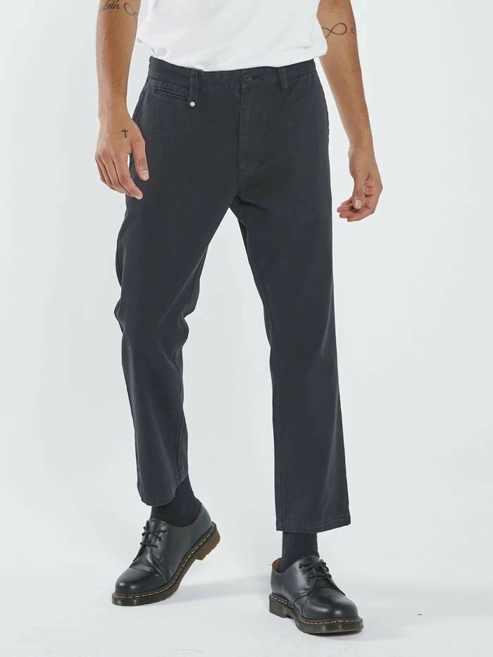 Our new Minimal Thrills Work Chopped Chino Pants are fitted and cropped and feature a deep, workwear-style back pocket. Trust us, they kinda work with any look you may be going for; match with one of our button ups and your docs or old chucks for a strong look.
