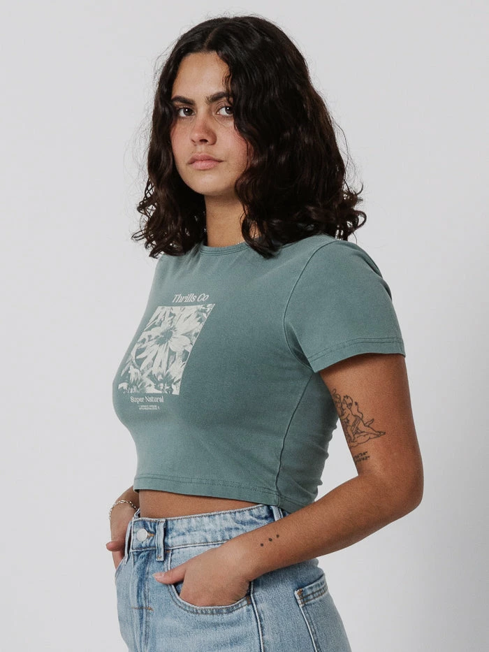 The Natural Daisy Baby Crop Tee is part of our Super Natural collection, showcasing naturally-dyed fabric derived from plants. Extracted from raw materials such as flowers, shells, fruits and leaves, the botanical dyes used in this range are waste-free, non-toxic and non-allergic, meaning better for you and the planet.Â