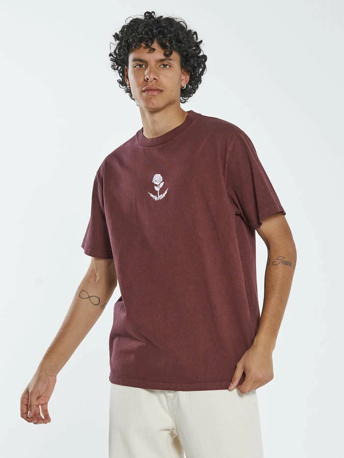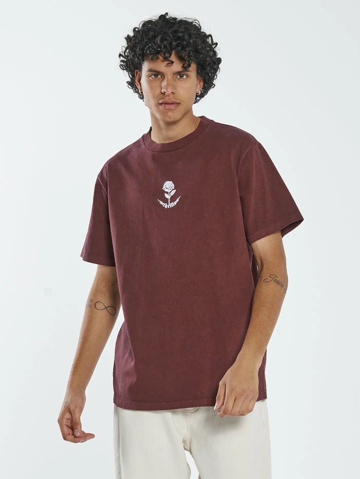 Another good tee to add to the drawers. Our merch tee offers a timeless boxy fit, you’re always going to feel good while wearing it. Plus make grandma proud by wearing some roses on your chest.