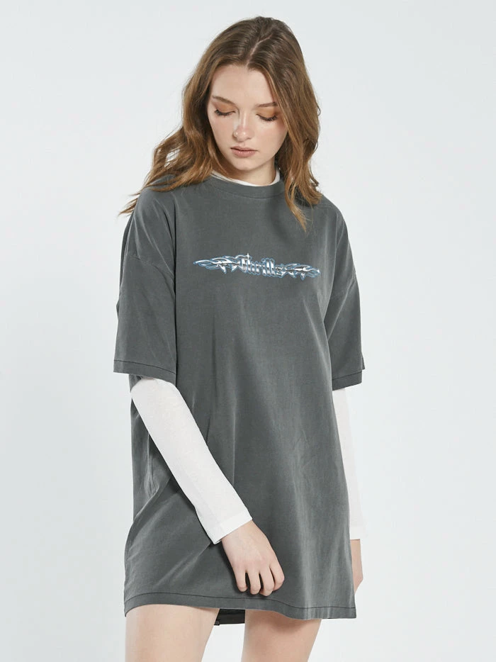 Anyone who owns a Thrills graphic tee probably has one that is gothic-tribal-inspired. This Turbulent Box Fit Tee Dress is so subtle, grungy and oh so Thrills.