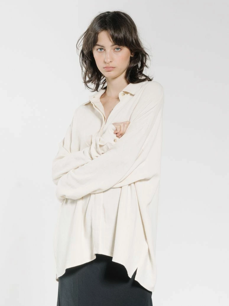 Look fancy even if you’re not feeling it in this super soft and flattering shirt. Dress it down with some denim or dress it up with your favourite slacks and accessories.