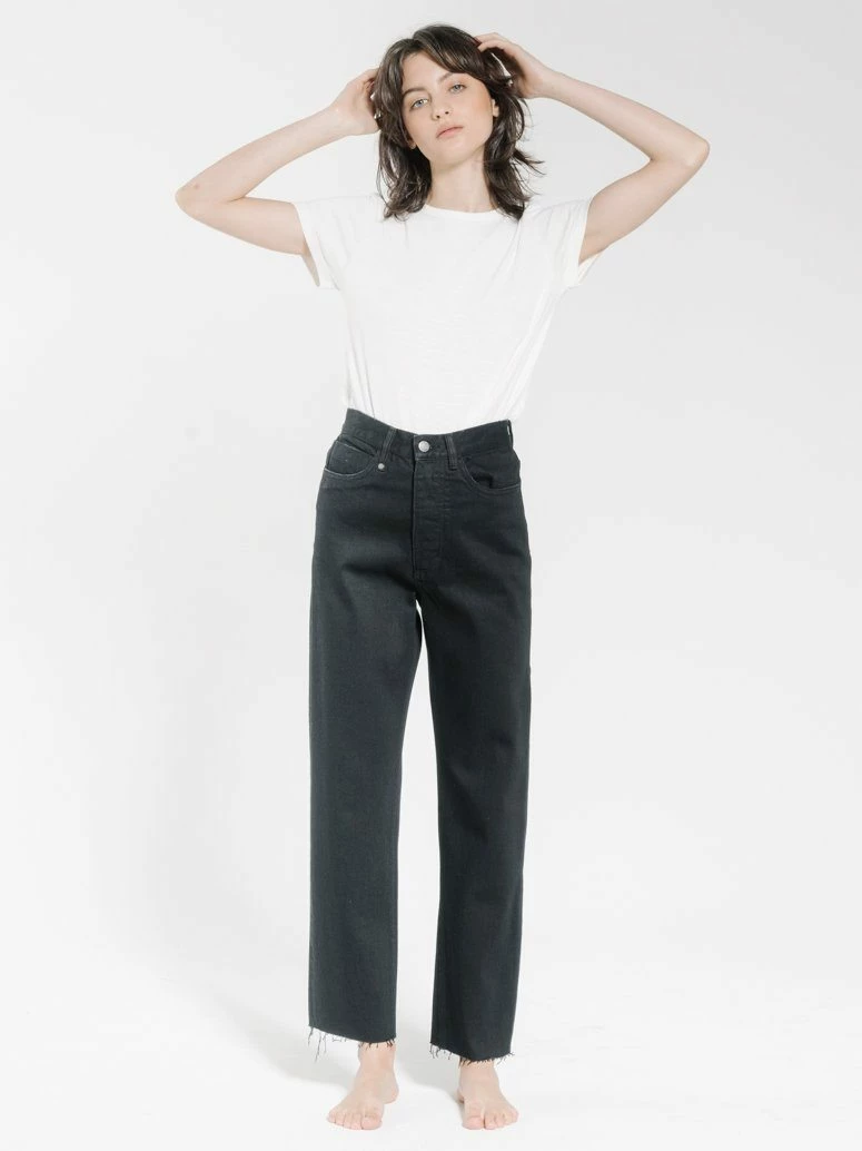 A high rise and cropped leg with a raw edge, these jeans are perfect for any occasion. Wear them super causal or dress them up, there is nothing offensive about a good old black denim wash and a flattering cut on any womanly body. The Paige Jean is part of our endeavour to move our denim program to 100% Organic Cotton and keeps its shape making it the perfect addition to a wardrobe. You can trust they will see some good times.