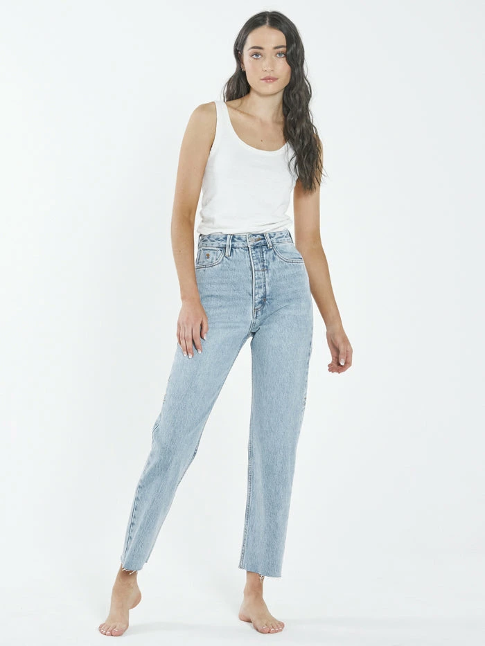 Our bestselling Paige Jean now comes in a new Dust Blue colourway. A high rise and cropped leg with a raw edge, these jeans are perfect for any occasion. Wear them super causal or dress them up, there is nothing offensive about a good old denim wash and a flattering cut on any womanly body. The Paige Jean is part of our endeavour to move our denim program to 100% Organic Cotton and keeps its shape making it the perfect addition to a wardrobe. You can trust they will see some good times.