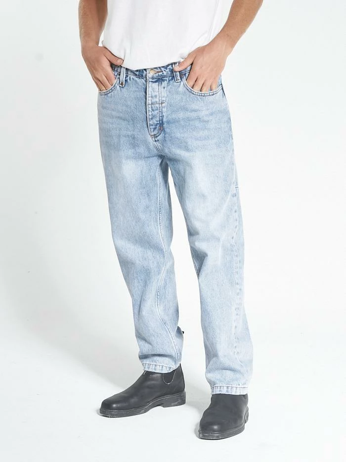 Our new loose-fit denim Slacker is now available in our new Aged Blue colourway. The Slacker is a twist on a 90s style relaxed fit with a longer rise and full leg and just the right amount of looseness. Super comfortable yet hardy, these jeans will happily see you through many days. They’re effortlessly cool, and we think you would feel pretty damn good wearing them knowing they’re made from Organic Cotton.