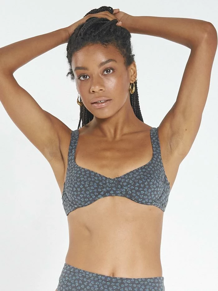 Feel good on the inside and out whilst sporting this number. This bikini top is a flattering cut featuring our dark and luscious floral Royal Bloom print, made from recycled polyamide. Team it with the matching high waist brief for a retro feel, or something fun from your swim drawer, whatever you choose you can’t go wrong.