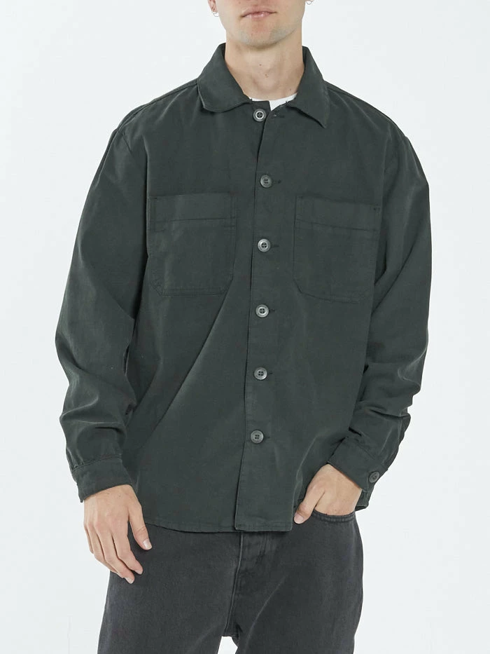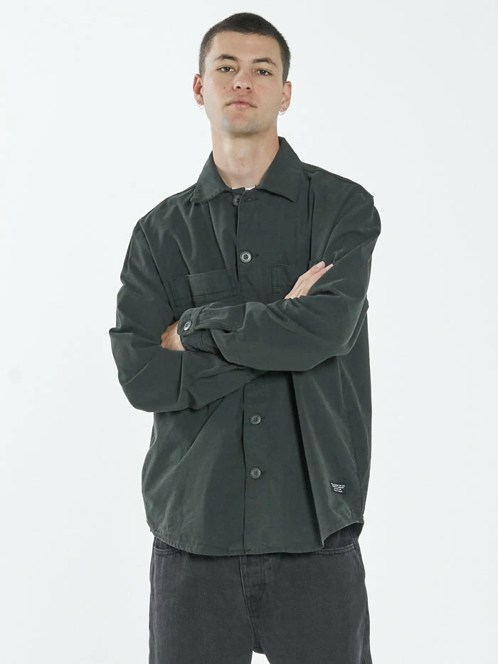 Vintage military inpired pieces have been integral to Thrills since the begining and this season’s Military collection plays with with contrast fabrications to create a tonal depth. The Century overshirt features reversed panels and our classic military label – the perfect piece for those cooler days to throw on top of a tee or shirt, and will effortlessly look cool. It is a timelss addition to your wardrobe and we think you’re going to be stoked on it for years to come.