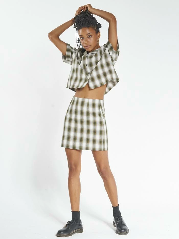 The Angel check fabric has made a come back, and boy are we happy about it! This skirt is designed to be worn either on its own or with the Angel Check Crop shirt, the ultimate set. The right amount of grunge, the right amount of sass.