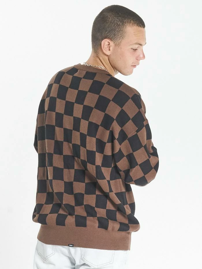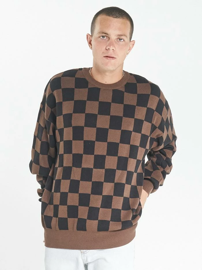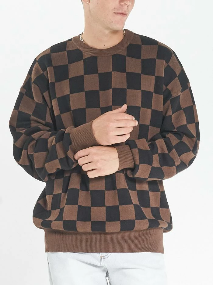 The Aalto series is our take on the beloved checkerboard pattern across multiple fabrications. The Aalto Crew Knit is probably one of our season favourites featuring soft tobacco and black hues in a fun print. This crew will keep you warm while making any outfit a fun time.