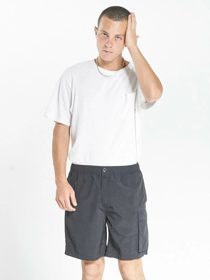 Rooted in a 90’s skate aesthetic, the Warped Collection is a clean blend of a strong Thrills Oval graphic and highlight royal blu, echoing the past with a new styled sensibility. These these nylon bad boys are sure to make a statement. Elastic waist for extra comfort, we think you should give these shorts a nudge.