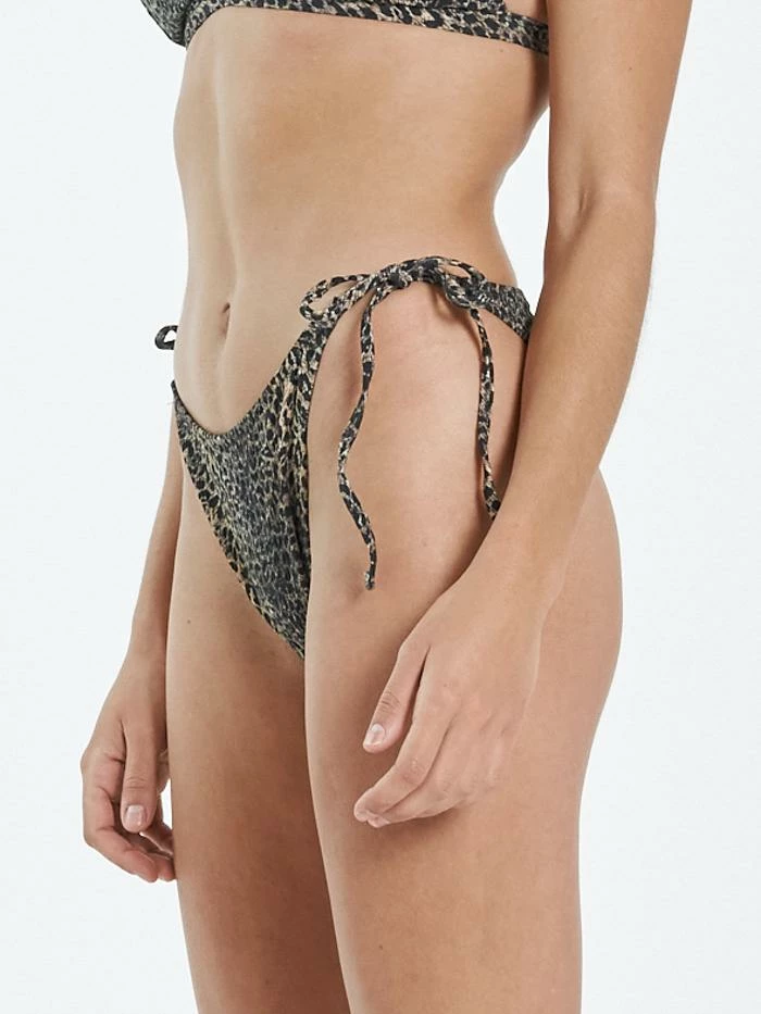 A real nod to the beach culture of the 1980’s this saucy little string bikini is a very fun addition to your swim wear drawer. It’s fun to match with the Wayward Tri Bikini Top, or go even more wild with a clashing print or bold colour top. Plus, it’s made out of Recycled Polyester, a win in all areas.