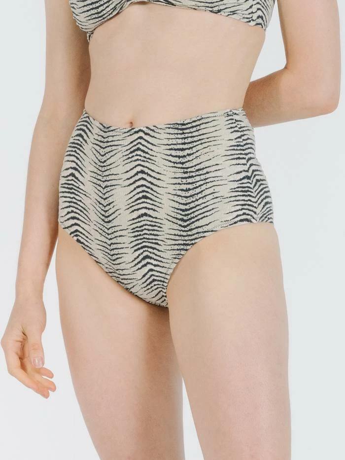 Flattering high cut bikini briefs, perfect to match with the zebra bandeau or underwire crop, but equally as cool with a block colour or clashing print bikini top.